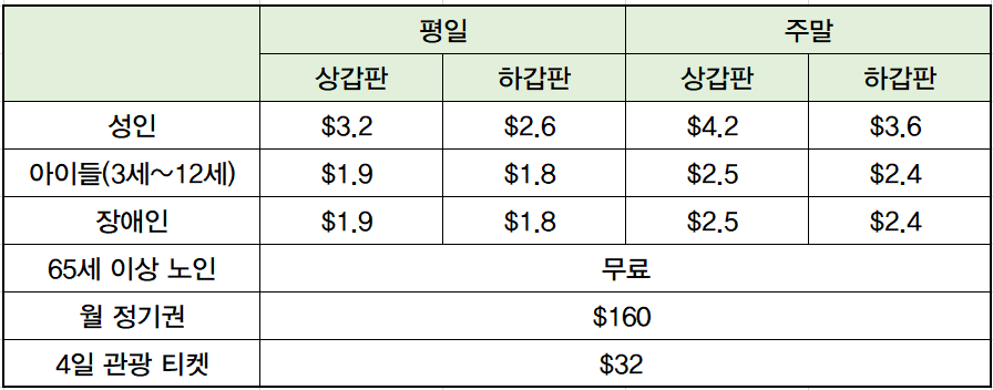 - 아이들과 장애인은 탑승 가격이 같습니다.